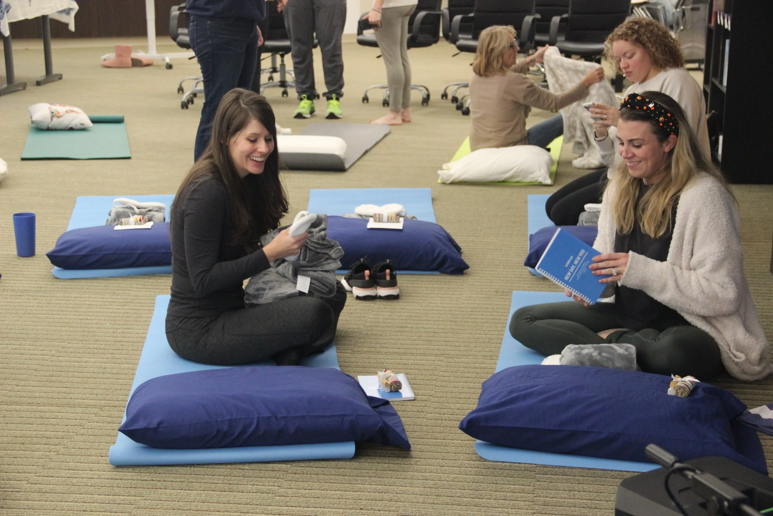 Seating - I typically bring a cotton blanket and a pillow for my head and a pillow to put under my knees, and a yoga mat to lay on.